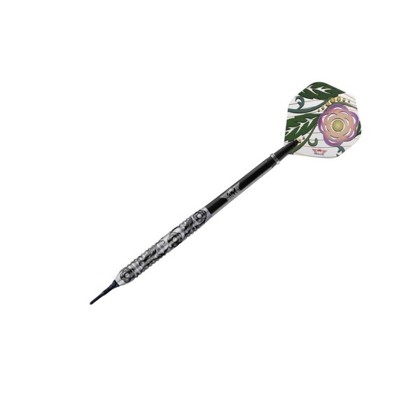 A flower does not use words to announce its arrival to the world; it just blooms” The Bull's Flora Camil is an 80% tungsten barrel dart decorated with elements of the Camille flower. Available in 18 grams. The precisely measured ring grip combined with flat grip pieces provides a pleasing experience in the hand that many darters will appreciate.